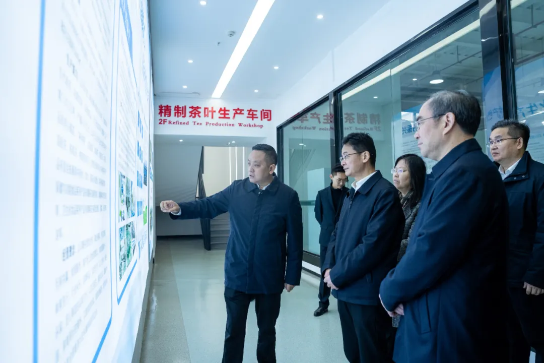 调研组首先参观了乾坤生物的莓茶工厂技术研究中心与标准化生产车间,详细了解了莓茶行业标准制定、生产流程及质量控制等方面的情况。乾坤生物拥有双院士领衔的强大科研团队,主要从事莓茶新技术、新产品、新标准的研究,同时企业积极参与制定莓茶行业标准,其中2项地方标准、6项团体标准和46项企业标准。曹志强对乾坤生物在莓茶产业标准化、规范化方面所做出的杰出贡献给予肯定,并指出,完善的行业标准对推动莓茶产业的健康发展至关重要。