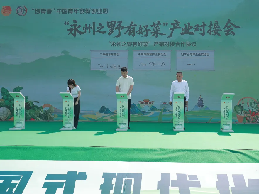 对接会上,湘粤两地青年企业家积极推动跨区域合作落地。广东省青年商会、湖南省青年企业家协会与永州市蔬菜产业联合会签署农产品供销长期合作协议,聚焦“湘菜出湘”目标,围绕供应链优化、市场渠道共享等领域建立协作机制,为永州优质农产品融入粤港澳市场搭建便捷通道。